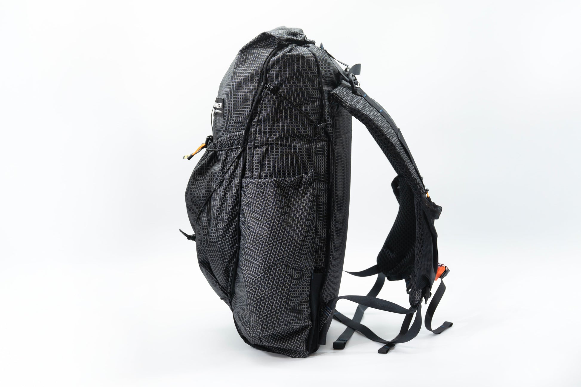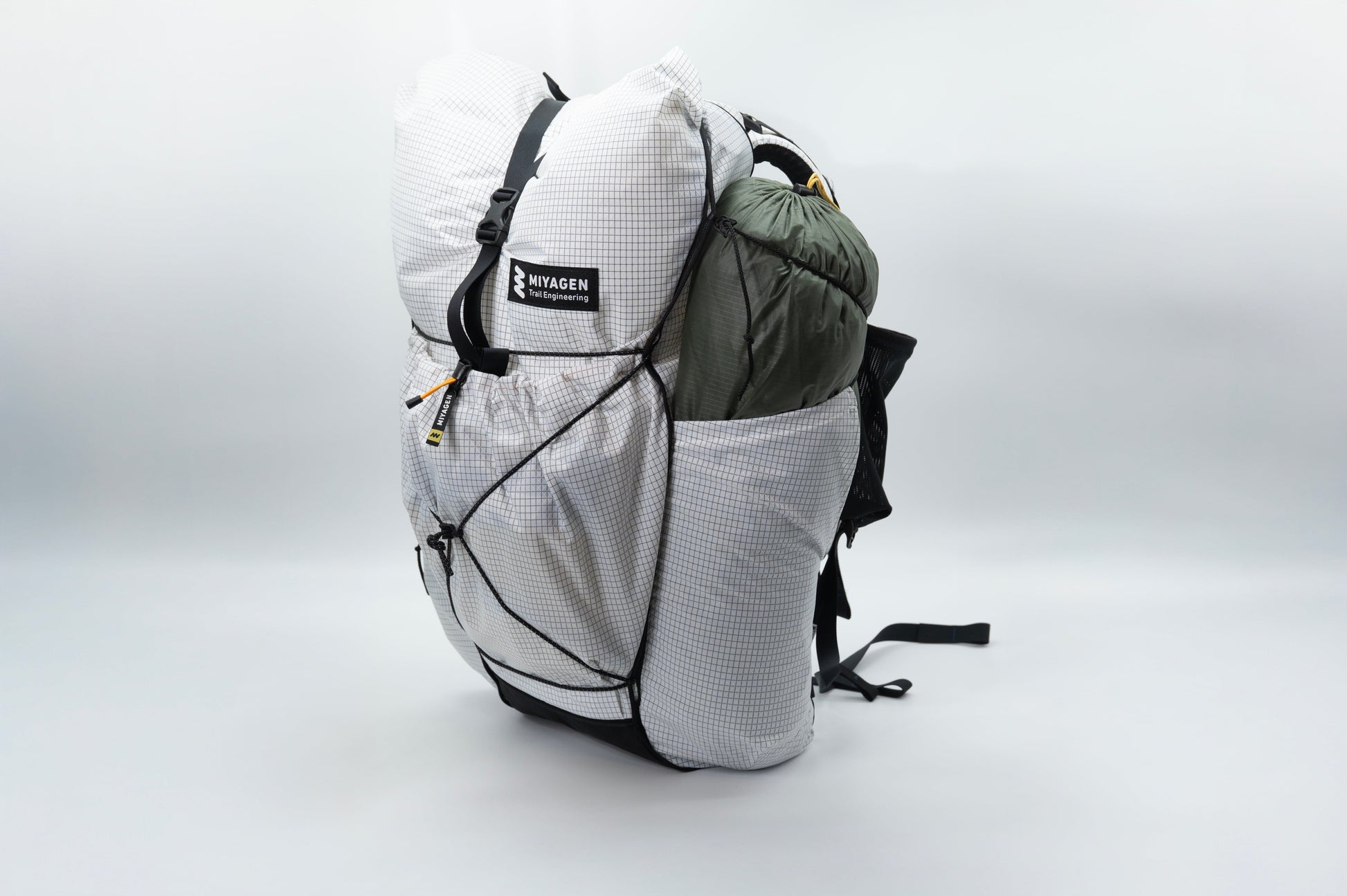 CREST 30の開発はCREST 40の開発と並行してはじまりました。MIYAGENのバックパック設計の源流はアメリカのウルトラライト思想にあります。MIYAGENはカリカリ超軽量なブランドではなく「軽くて強くて使いやすい道具」を目指しています。CREST 40はカーボンフレームで耐荷重・フィット感・汎用性を高めた大容量バックパックです。CREST 30はそこからさらにULの源流へ引き戻したモデルで「道具が決まったハイカー」に向けた設計となっています。 ロングトレイルに必要な装備が固まり、パッキングスキルが身についたハイカーにとって、フレームは「なくても成立するもの」になります。CREST 30はそのステージのハイカーが、30Lの容量でベースウェイト3〜4kgの軽量装備を快適に背負うために設計しました。 「650gで何ができるか」ではなく「650gで何を削ったか」。そのトレードオフを意識して設計を進めました。削ったのはフレームとパッドの一部。残したのは全周デイジーチェーン、大型サイドポケット、3D CAD立体裁断の快適性です。装備の軽量化を進めたハイカーが「次に欲しいバックパック」として設計した1本です。