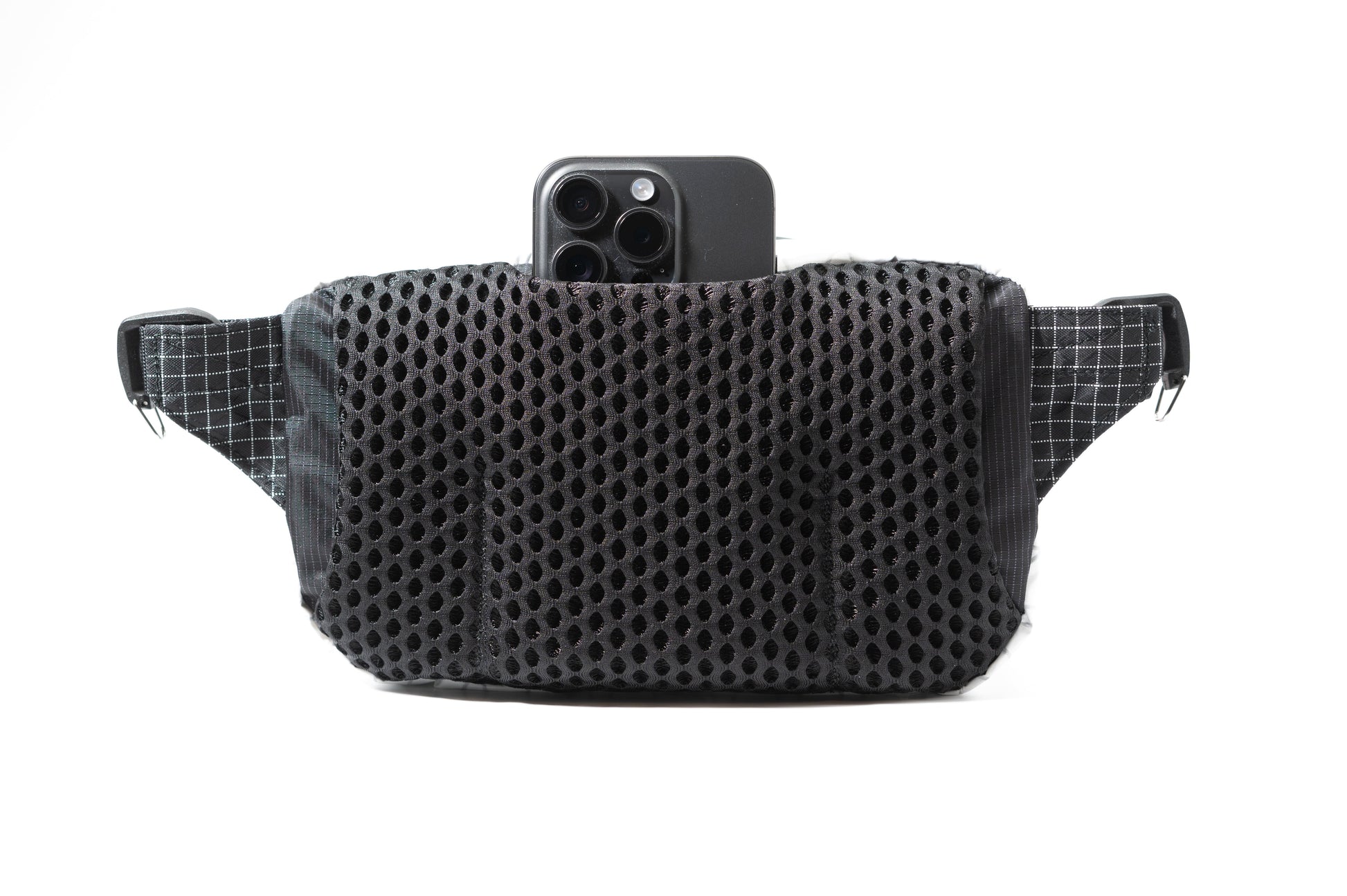 - バックパネル:ダブルラッセルメッシュ素材にスマホポケットとベルト通し穴を装備。通気性と利便性を確保