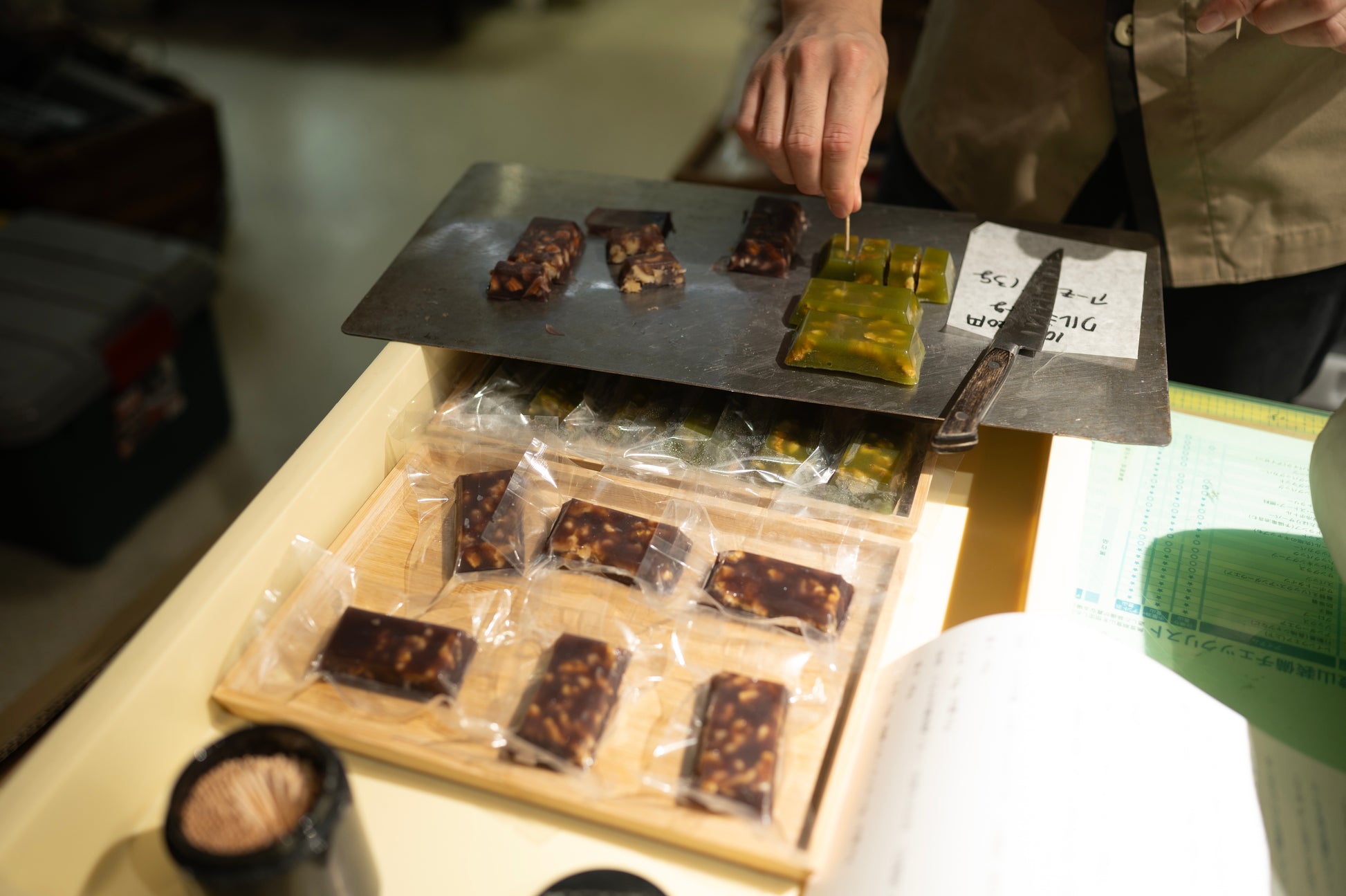 ■くるみについて くるみはバター(約750キロカロリー/100g)に次いで高エネルギーの食材です。タンパク質が豊富に含まれており、卵黄(約16.5g)と同程度のタンパク質が含まれています。「オメガ3脂肪酸」が豊富で体にとって重要な脂質です。 ■羊羹について 羊羹は、古くから日本で親しまれている甘味であり、主に小豆、砂糖、寒天などを原料として作られる和菓子です。エネルギー量は高く、100gあたり約295キロカロリーで、主に砂糖によるカロリー供給が豊富な食品です。 糖質量は100gあたり67gと高く、すぐにエネルギーに変換されやすいため、特に長時間の活動や体力が必要なときには効率的なエネルギー補給として適しています。 小豆由来のビタミンやポリフェノールも豊富に含まれています。体内の酸化を防ぐ「抗酸化作用」があり、健康な細胞を守りながら疲労回復を促進する効果が期待されています。ポリフェノールの抗酸化作用は、特に運動後やストレスの多い環境で役立ちます。 発売をして、たくさん食べた感想 三徳屋との共同開発ということ、家の真横ということもあり、サンプルが出来上がったらすぐに試食をしてフィードバックを反映していきました。 くるみ以外にもアーモンドを使ったり、焙煎をさせたり、砂糖や小豆の生産地を変えたり…無数のレシピを一緒に考えてくれました。 今回発売ができて、同じ町内でできて本当によかったです。三徳屋はMIYAGENよりも歴史が長く100年以上の歴史があります。しかし現在の店長は私と同年代で幼馴染。一緒に仕事をできたことに誇りを感じます。 MIYAGENは完全予約制となっており、なかなか行くことが難しいですが、三徳屋は定休日以外は気軽に行くことができます。とれいるようかんも販売しておりますので是非お気軽にお立ち寄りください。イートインスペースもあります。 季節の和菓子を楽しんでいただけると嬉しいです。個人的に三徳屋のみたらし団子は是非食べていただきたい一品です。私には物心ついた時から続く三徳屋の味です。 販売什器はMIYAGENで設計して取引先店舗へ置く予定ですのでもし見かけたら什器も観察していただけると嬉しいです。 酒屋としておすすめ 酒屋としてのコメントですが、とれいる羊羹はウィスキーとの相性が抜群にいいです。 私はウィスキーのレビューによくあるテイスティングノートは書けるような表現力はないですが、ウィスキーは美味しい!と感じたらいいんだと思ってます。 夜中まで仕事をしている時になんとなくウィスキーを飲み、食べかけのとれいる羊羹を食べてみると丁度よく舌に溶けていく感覚が絶妙なことに気がつきました。 最初は特に手に取りやすく美味しいジャパニーズブレンデッドウィスキーのサントリーのオールドやリザーヴのツマミにどうぞ。 ご自宅で楽しむなら1cm程度に切って、一口で食べられるサイズで。ちびちびとお楽しみください。 よくチョコレートとウィスキーと言いますが、それとは全く違う絶妙なハーモニーとなります。ウィスキーの香りを邪魔せず、寒天で固まった羊羹が体温で溶けながら、ウィスキーとゆっくりと絡まって味の変化もちょうどいいです。 ジャパニーズorスコッチ ストレートorオンザロックorハイボールでどうぞ。 ※飲みすぎ食べ過ぎにはご注意ください。