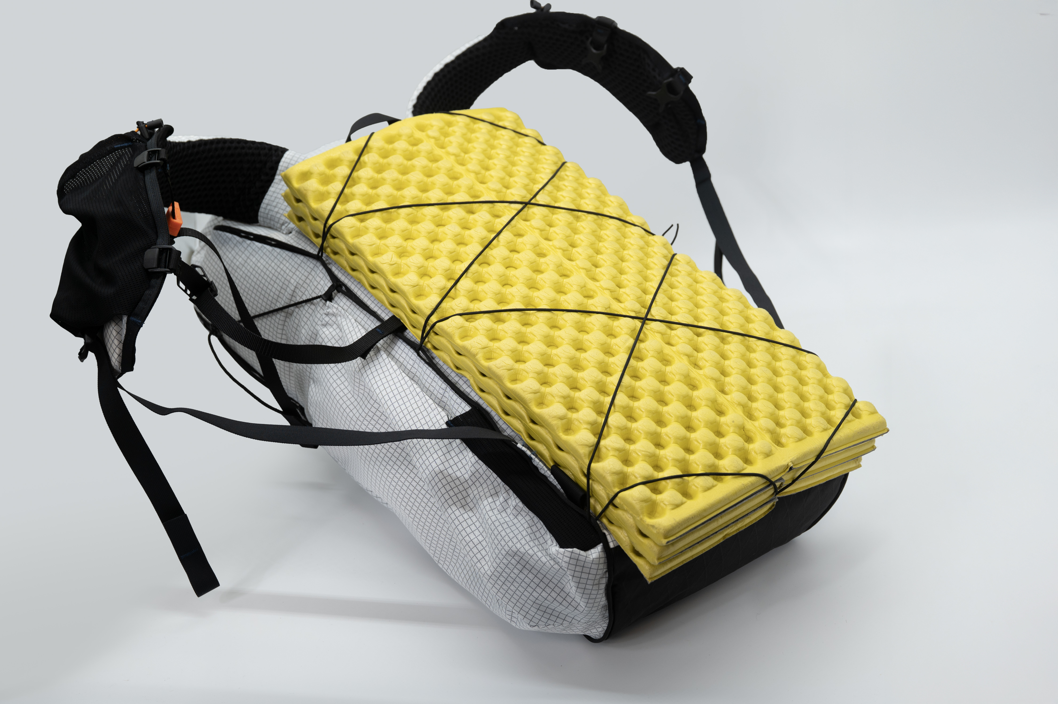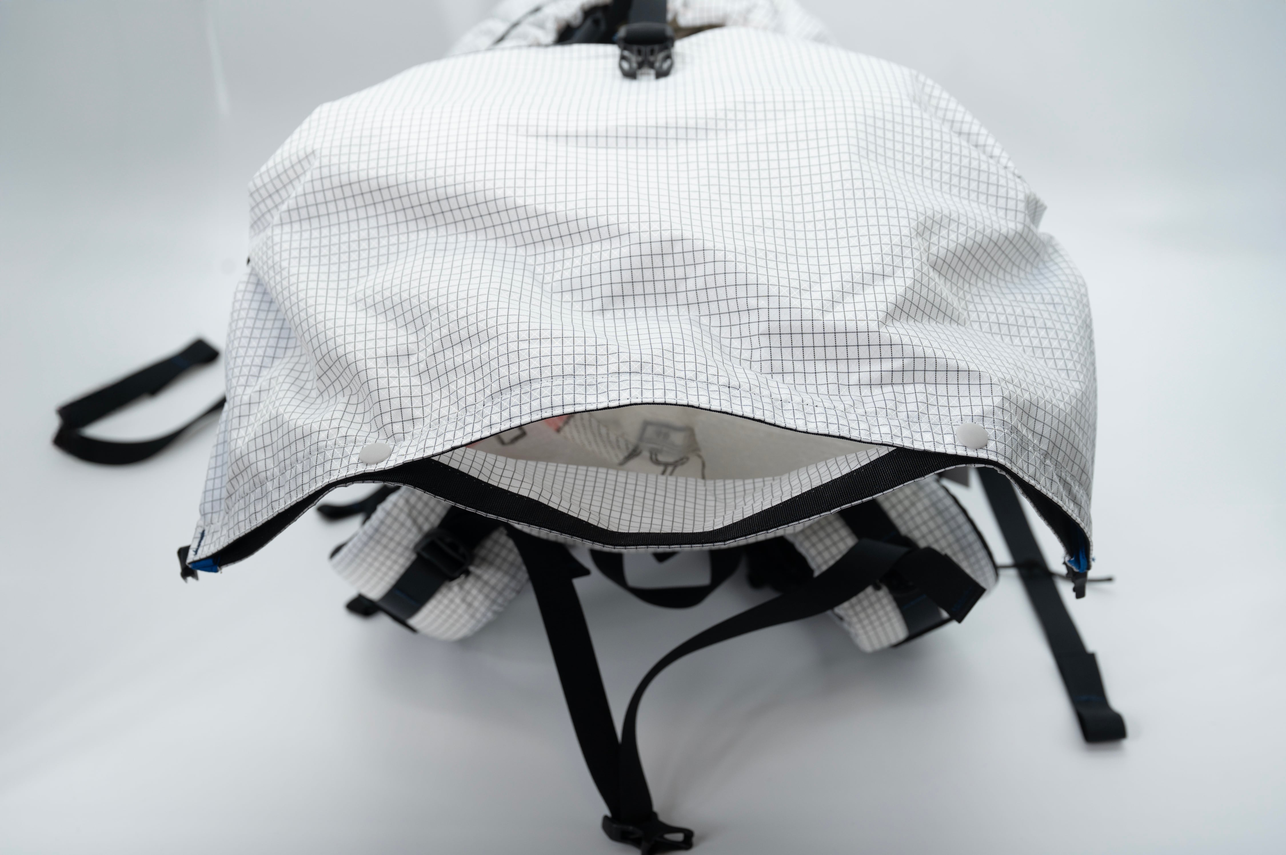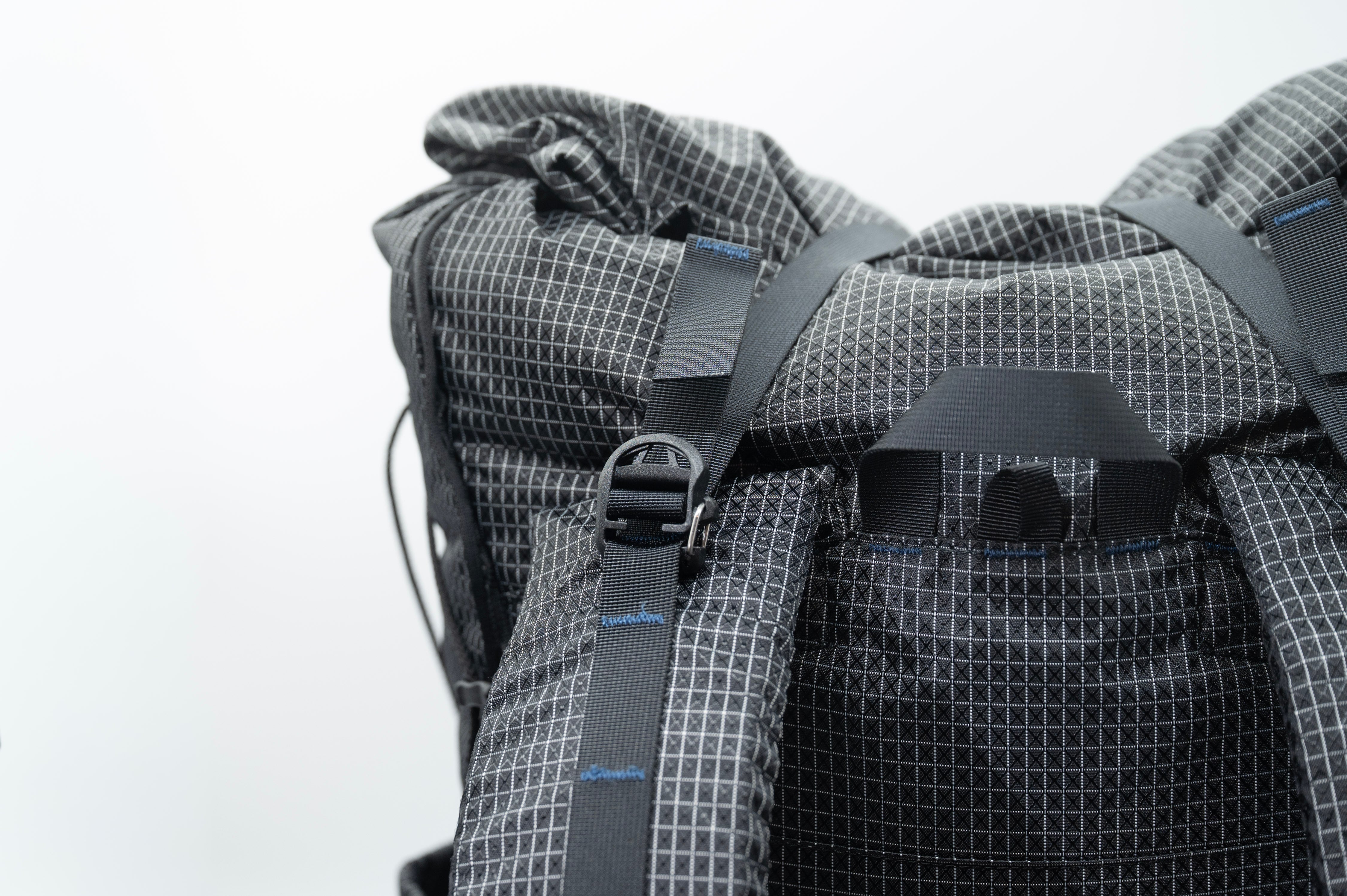 CREST 30は全周にデイジーチェーンを配置し、固定・拡張・外付けの余白を残しました。ハイカーがトレイルに最適化できていくように、バックパックも可変できる設計です。