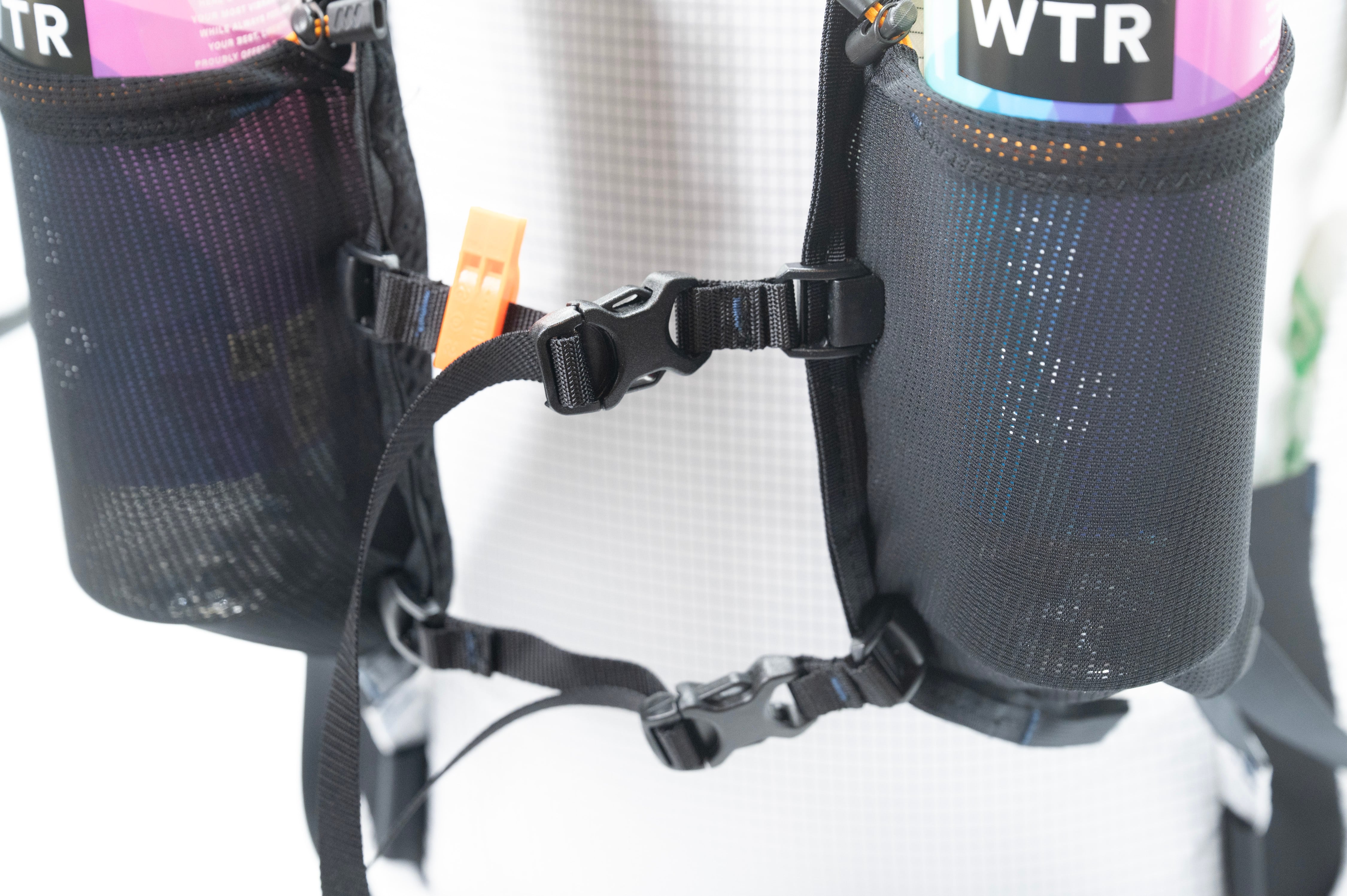 チェストポケットも新たに設け、ボトルが2本収納できるようにしました。ボトルを収納することで前後のバランスが取れて、軽く感じるようになります。
