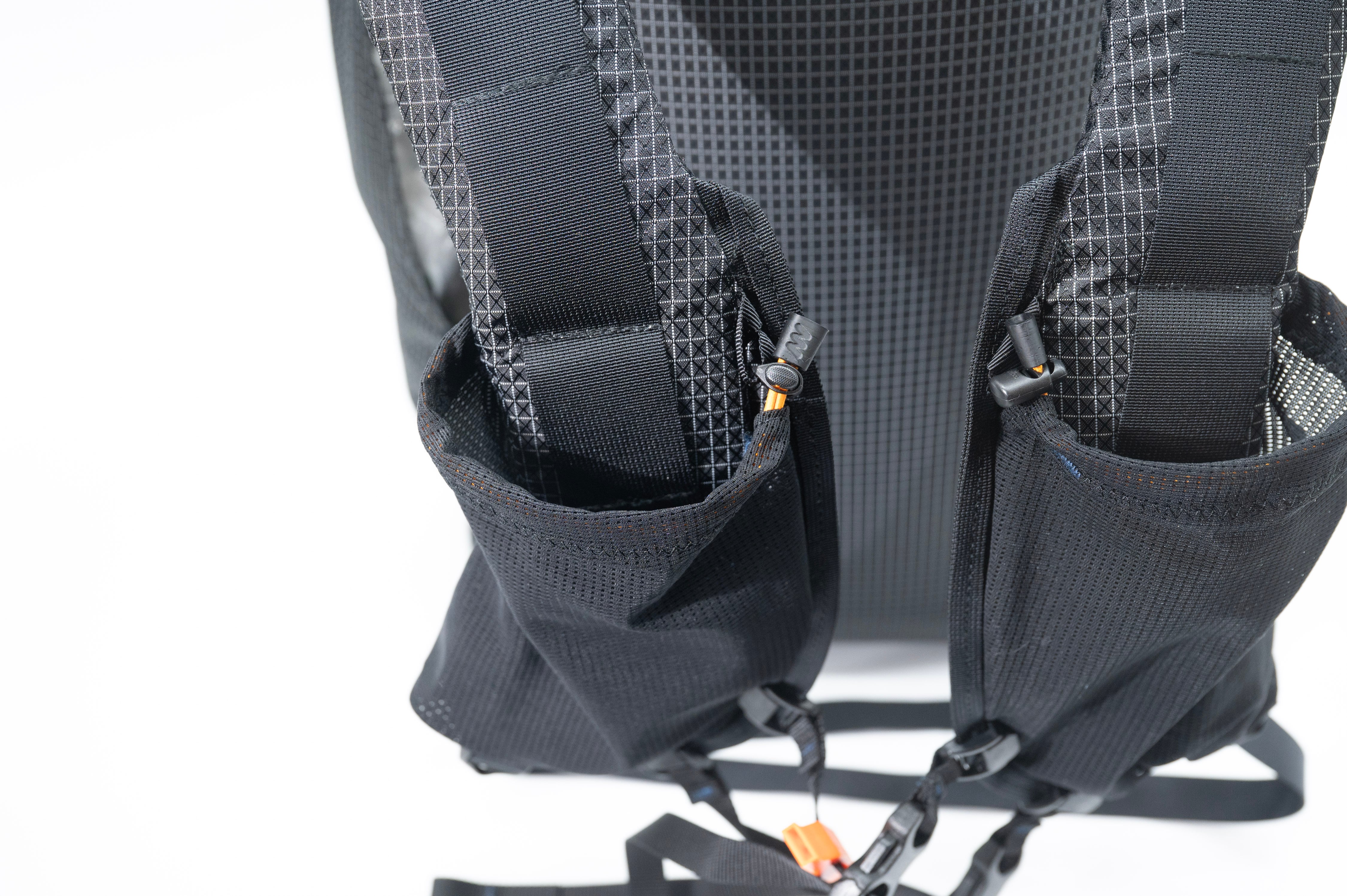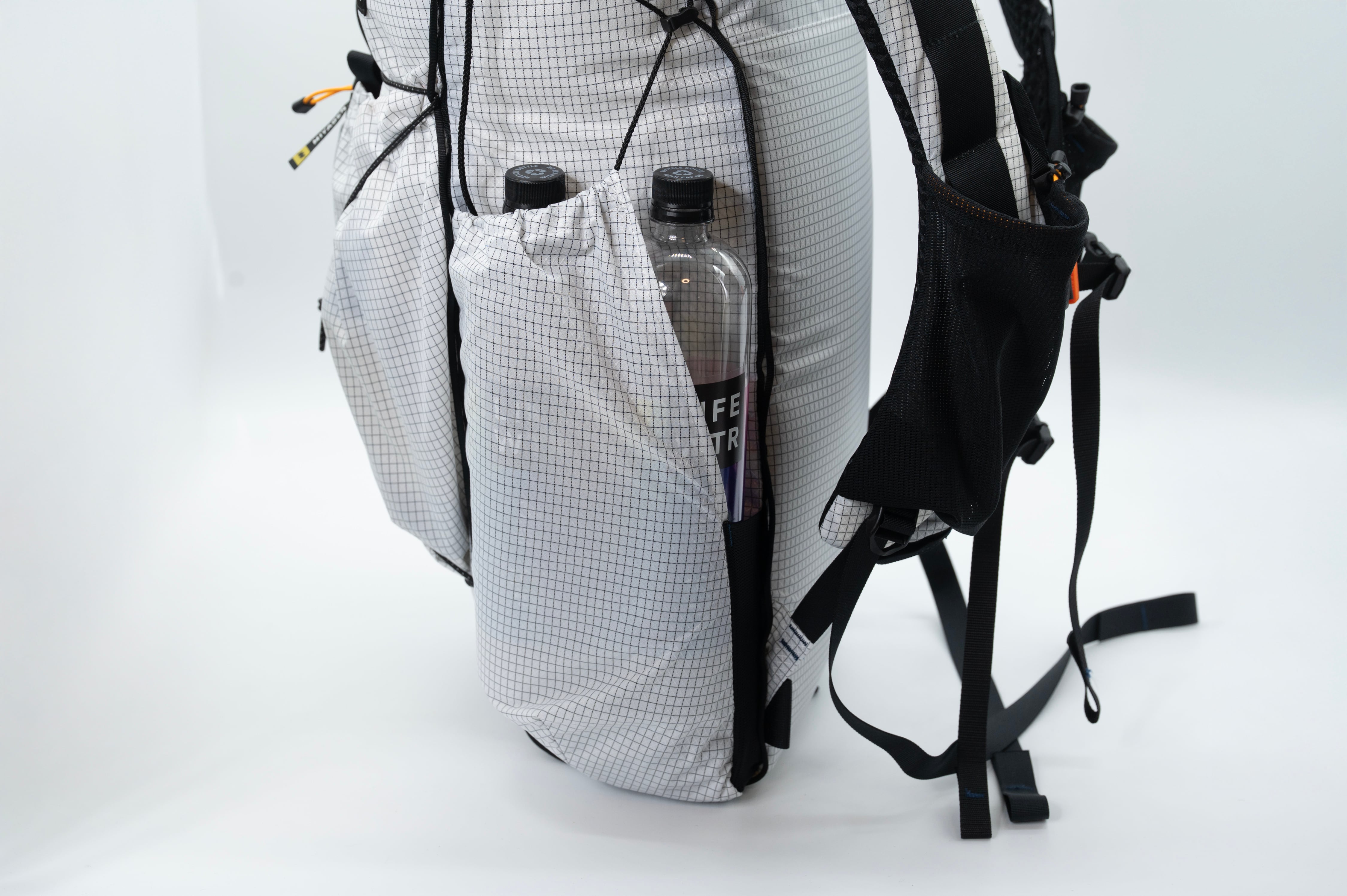 サイドポケットはソロテントが収納でき、ボトルが2本入る大きさにしています。
