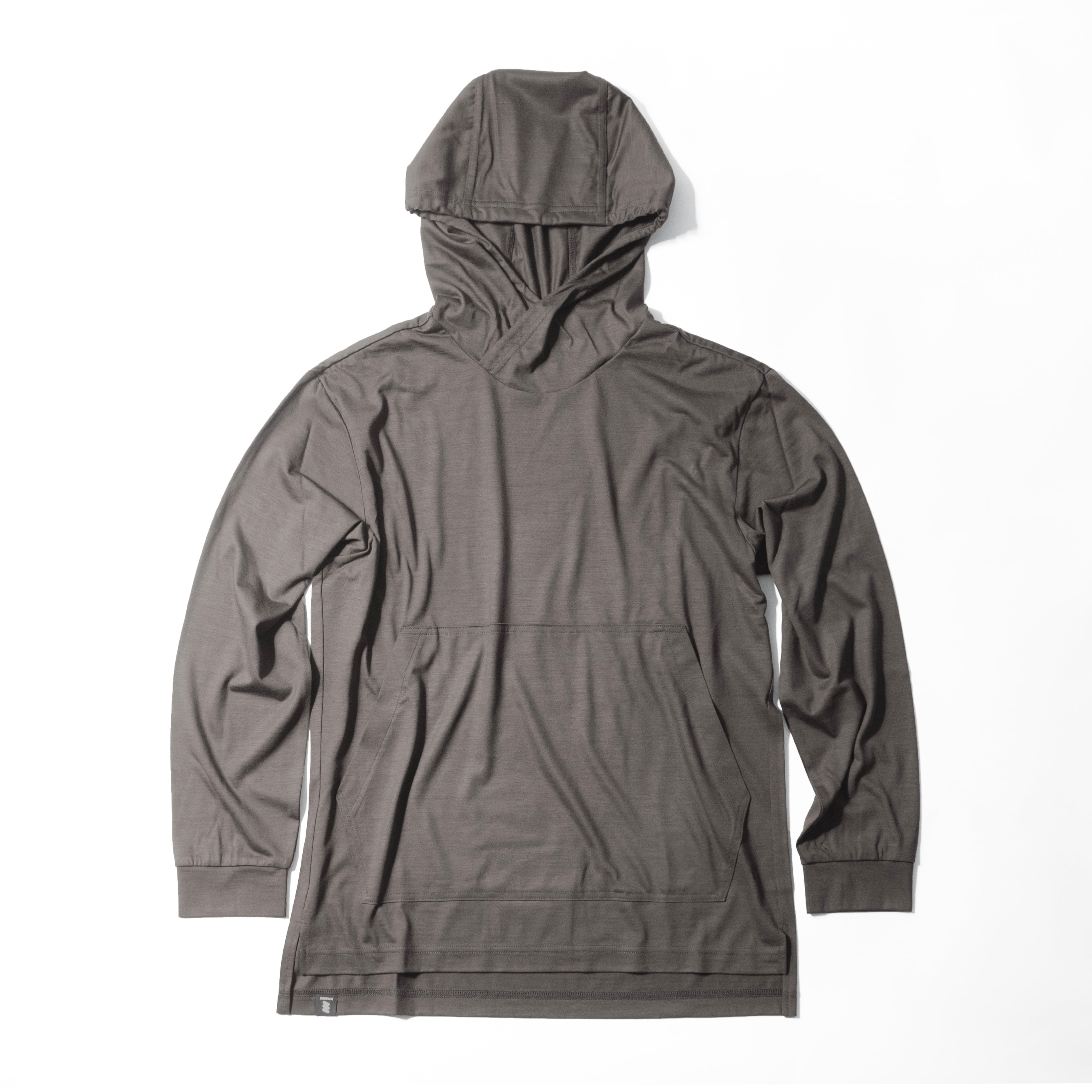 このロングスリーブ メリノ フーディの1番目の特徴は立体裁断のフードと大きなカンガルーポケットです。