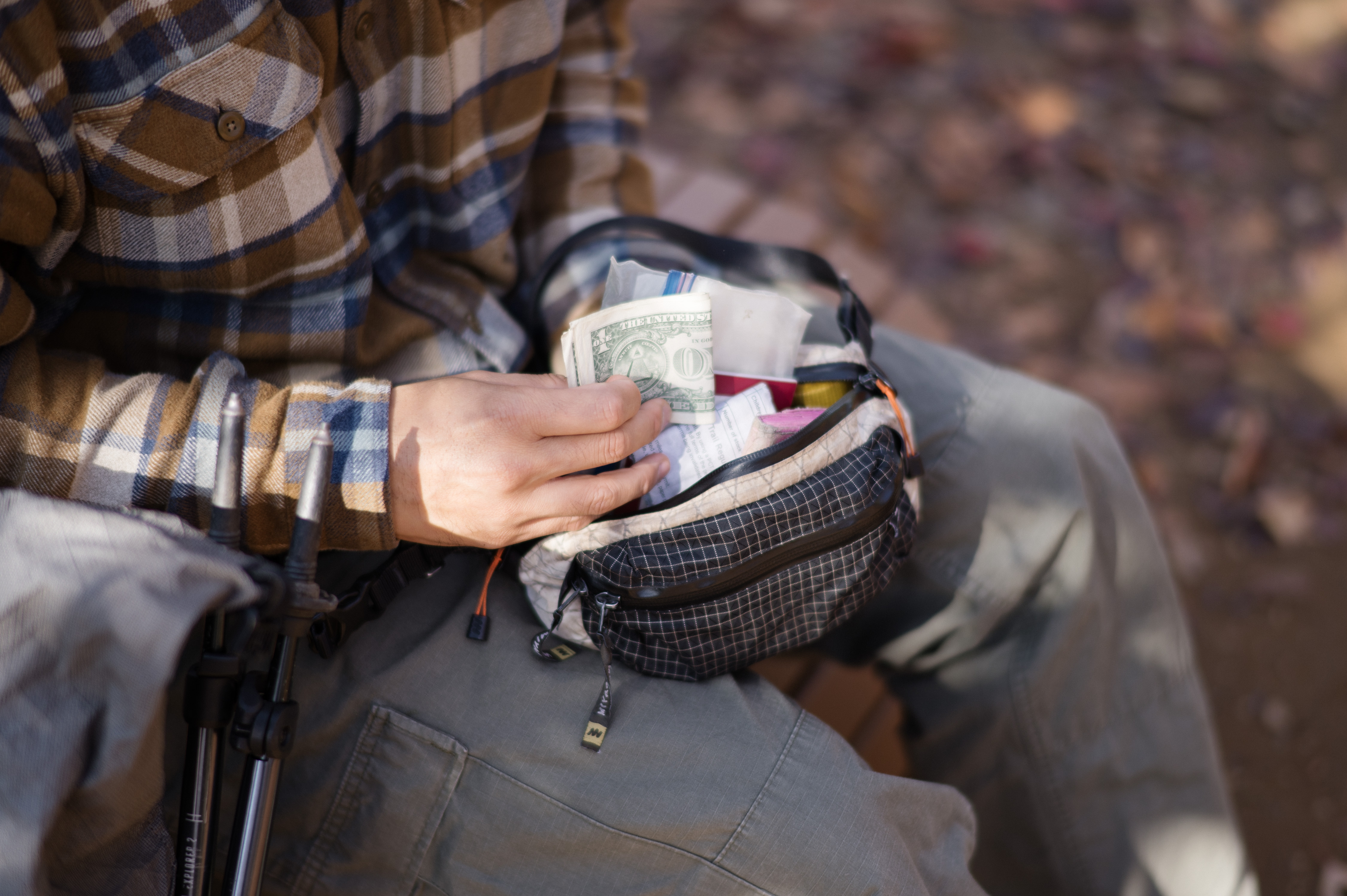 PCTを歩いている最中はほとんどのハイカーがファニーパックやウエストパックを装着しており、使用感やハイキングでの使い心地が気になっていました。帰国してから様々なメーカーのファニーパックを研究しデザインを検討しました。
